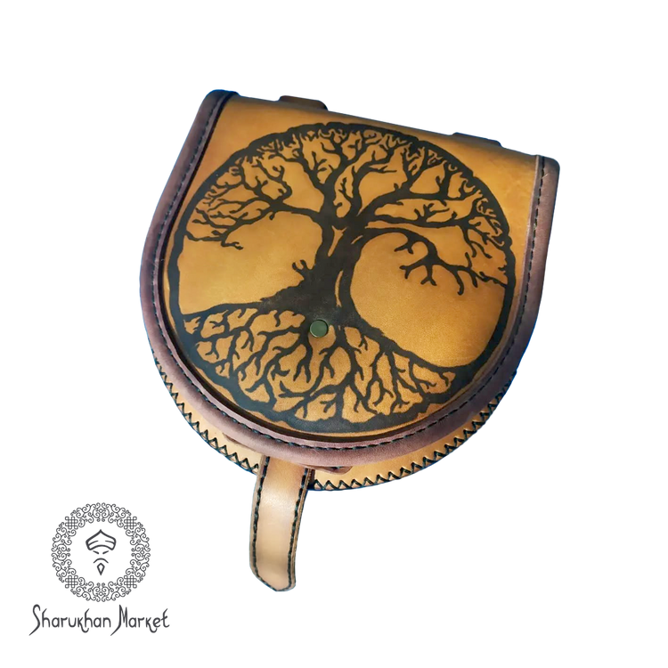 Handmade leather waist bag with engraving. Size 16x17x4 cm