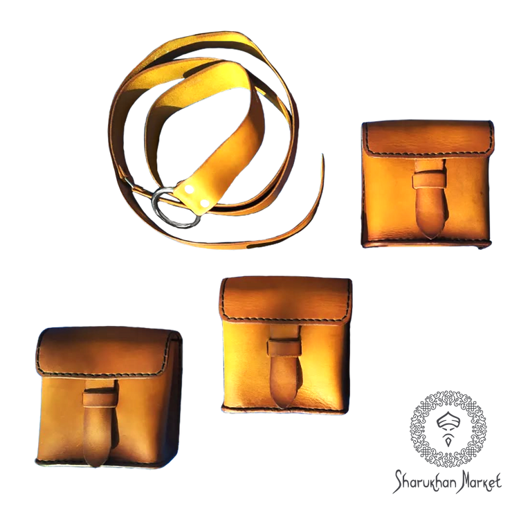 Handmade leather waist bags with belt. Size 10х10х5 cm.