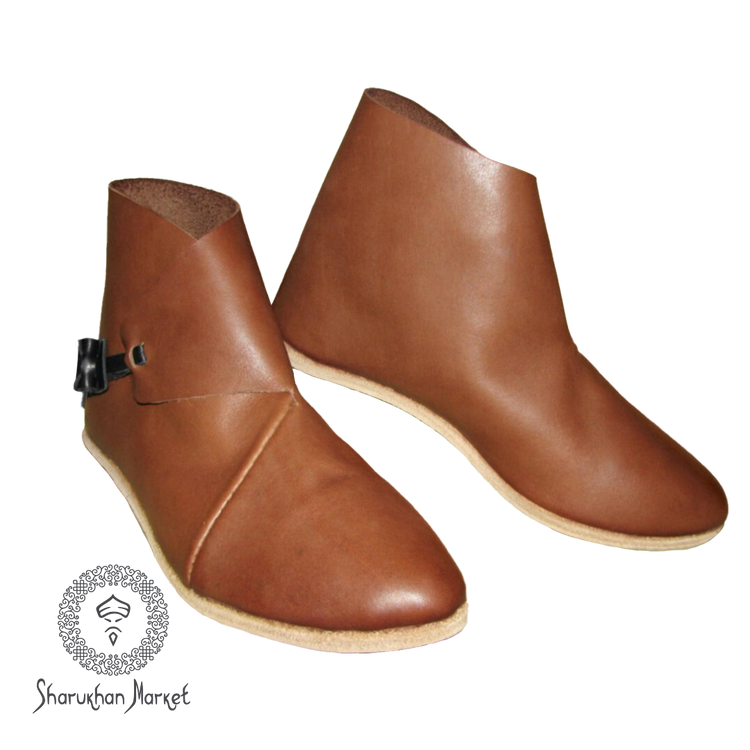 Top quality, handmade leather boots for reenactments and buhurt, SCA and LARP.  It's made of thick leather 1.5 - 2 mm and has and an optional rubber layer on the sole.