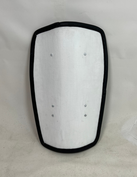Battle-ready replica of a medieval shield for buhurt sport and SCA heavy fight. It's made of three plywood layers, 12 mm in total, covered with canvas and has thick leather on the edges. Size 65x35 cm.